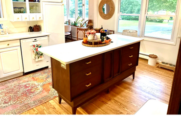 One of our customers bought this credenza off FB Marketplace. She wanted to make it into an island in her remodeled kitchen. The main problem was that it was too short. A typical kitchen island is 38 inches tall; the credenza was 30.